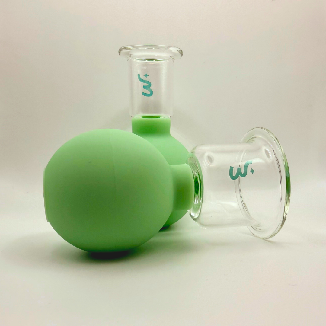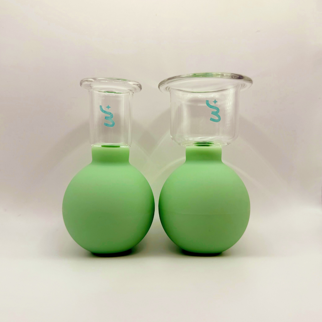 Due Flow cups da utilizzare sul corpo. Misura L, per braccia, addome e ginocchia. Misura XL per per gambe, addome e glutei. Incluso anche un sacchetto di cotone per riporle e un video tutorial per utilizzarle.