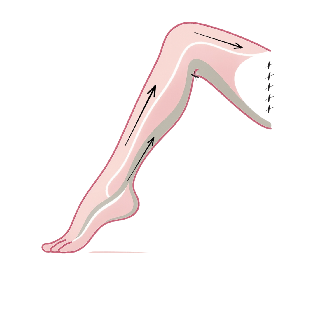 Crea un'aspirazione appena sopra il ginocchio e poi spostati verso l'alto in direzione dei fianchi. Ripeti il movimento su tutte le gambe partendo dal basso, spostando le flow cups verso l'alto.